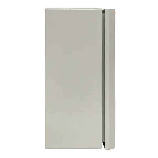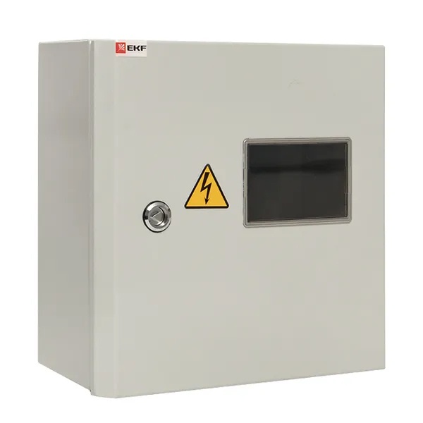 Корпус металлический ЩУ серии PROxima от компании EKF предназначен для сборки электрощитов учетно-распределительного типа на основе счетчиков электроэнергии и модульной аппаратуры. Он представляет собой компактную конструкцию навесного типа, оснащенную сплошной дверью и сделанную из листовой стали толщиной 1.2 мм. Снаружи оболочка покрыта светло-серой порошковой краской RAL 7035, которая обеспечивает антикоррозийный эффект. Учетный щит обладает степенью защиты IP54, которая предотвращает попадание пыли и влаги внутрь корпуса. Внутреннее пространство рассчитано на установку устройств шириной в 3 модуля и однофазного электросчетчика на панель размером 200х230 мм. Для снятия показаний счетчика на двери щита предусмотрено прозрачное окно. Номинальная нагрузка тока не должна превышать 125 Ампер при напряжении сети 230-400 Вольт.