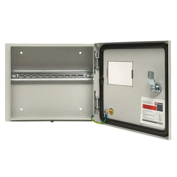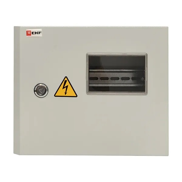 Учетный щит ЩУ серии PROxima от известного производителя EKF представляет собой навесной корпус в металлической оболочке, предназначенный для ввода и учета электроэнергии. Внутреннее пространство оснащено DIN-рейкой для размещения модульного оборудования и электрических счетчиков. Данная модель бокса рассчитана на установку 12 модулей в один ряд с номинальной величиной тока до 125 Ампер при напряжении сети 230-400 Вольт. Оболочка электрощита сделана сварным методом из листовой стали толщиной 1.2 мм и обеспечивает жесткость и герметичное соединение частей. Надежная степень защиты IP54 предотвращает попадание пыли и влаги внутрь корпуса. Для обеспечения дополнительной защиты шкаф оснащен сплошной дверью с углом открывания 120 градусов, запирающейся на замок и имеющей по внутреннему периметру герметичный уплотнитель.