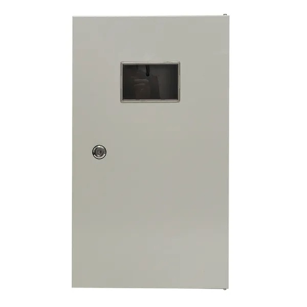 Для подключения кабелей предусмотрены отверстия снизу корпуса. Щит может быть размещен на открытом воздухе под навесом на плоской поверхности или на столбе с применением специального монтажного комплекта.