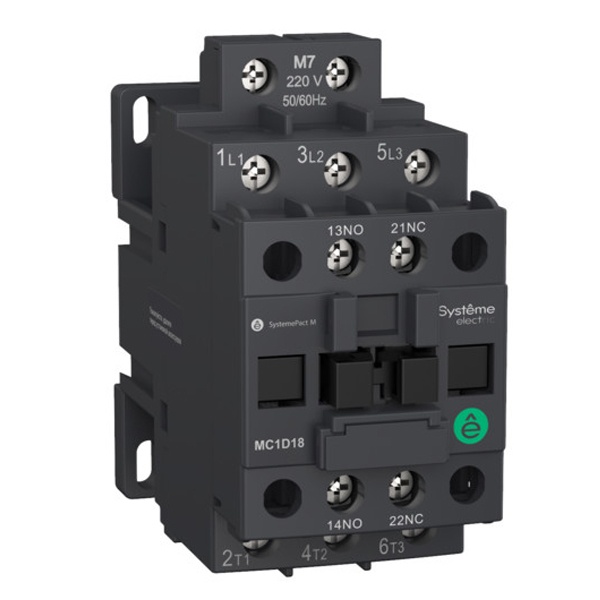 SystemePact MC1D от компании Systeme Electric представляет собой серию контакторов и реле перегрузки, разработанную специально для промышленного применения с номинальными токами от 9 до 95 А. Эта линейка была создана на основе решений TeSys D от компании Schneider Electric, вобрав в себя лучшие качества и передовые технологии для полноценной замены серии LC1D на MC1D. Контакторы SystemePact MC1D разработаны с учетом строгих требований к надежности и долговечности в условиях повышенных нагрузок и интенсивной эксплуатации. Эти устройства стали оптимальным выбором для промышленных применений, гарантируя стабильную и безопасную работу оборудования.