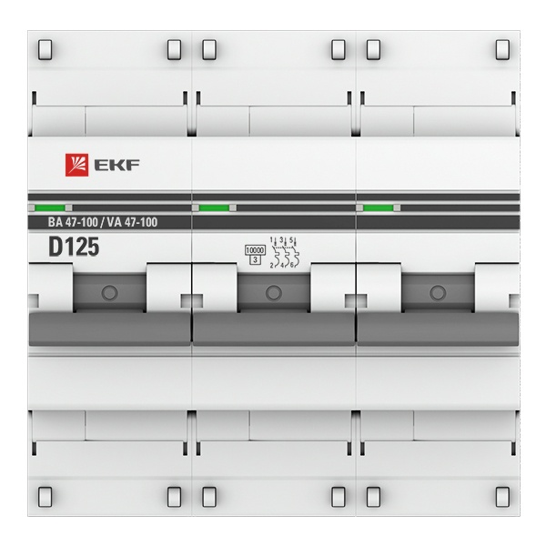 Автоматический выключатель EKF PROxima ВА 47-100 3P 125А (D) 10kA (автомат электрический) mcb47100-3-125D-pro