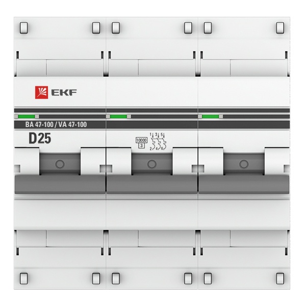 Автоматический выключатель EKF PROxima ВА 47-100 3P 25А (D) 10kA (автомат электрический) mcb47100-3-25D-pro