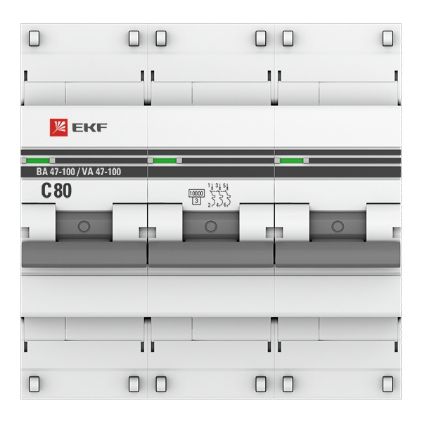 Автоматический выключатель EKF PROxima ВА 47-100 3P 80А (C) 10kA (автомат электрический) mcb47100-3-80C-pro
