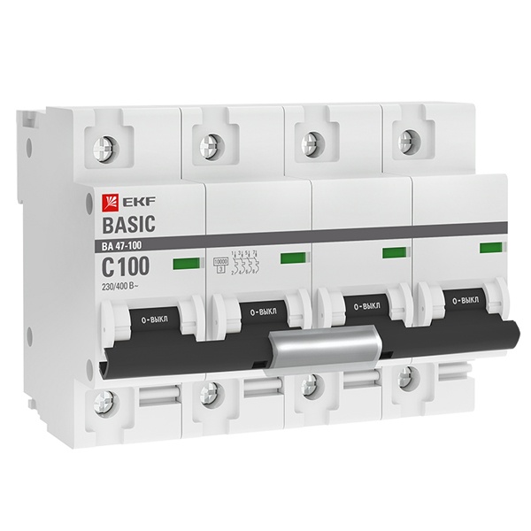 mcb47100-4-100C-bas Автоматический выключатель EKF Basic ВА 47-100 4P 100А (C) 10kA (автомат электрический)