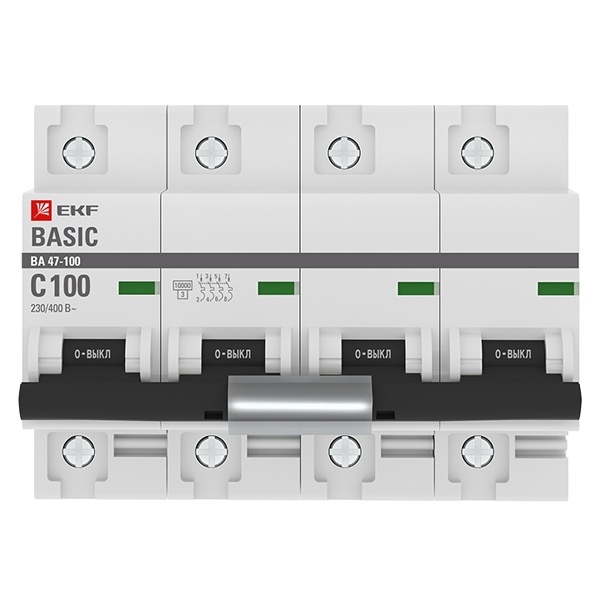 Автоматический выключатель EKF Basic ВА 47-100 4P 100А (C) 10kA (автомат электрический) mcb47100-4-100C-bas