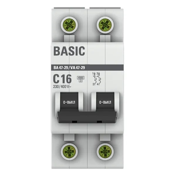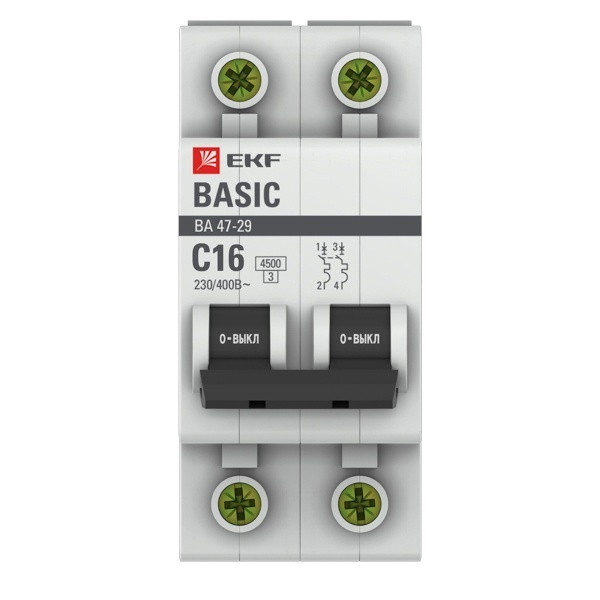 • Автоматический выключатель EKF Basic ВА 47-29 2P 16А (C) 4,5кА (автомат электрический)