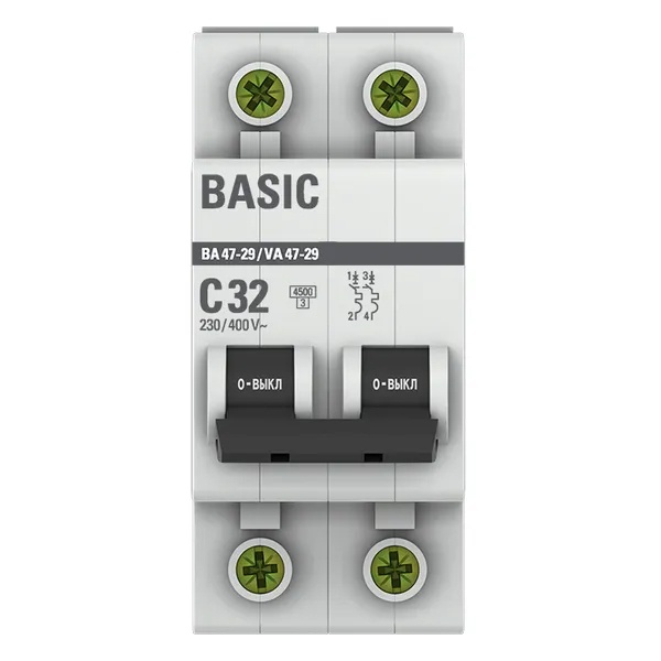 Автоматический выключатель EKF Basic ВА 47-29 2P 32А (C) 4,5кА (автомат электрический) mcb4729-2-32C
