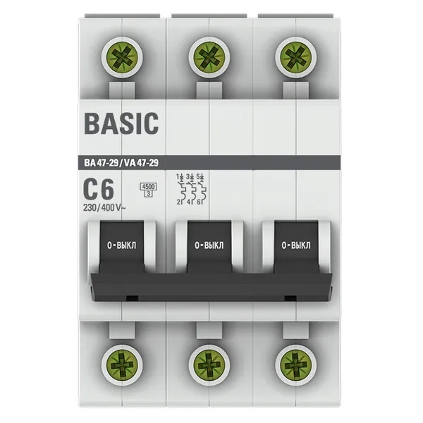 Автоматический выключатель EKF Basic ВА 47-29 3P 6А (C) 4,5кА (автомат электрический) mcb4729-3-06C