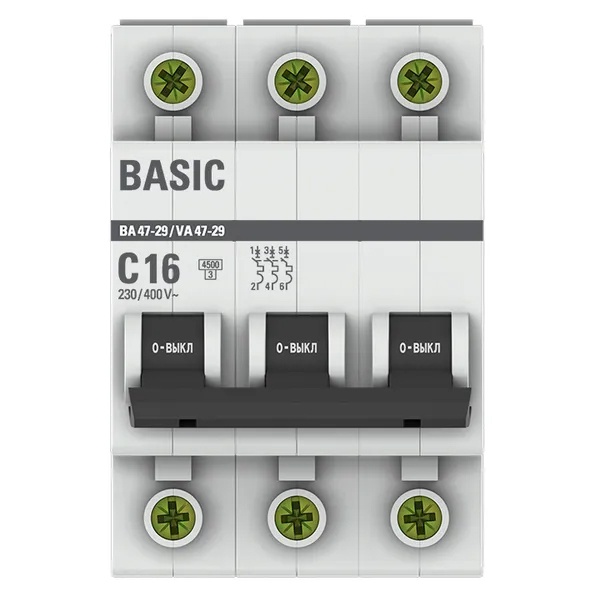 mcb4729-3-16C Автоматический выключатель EKF Basic ВА 47-29 3P 16А (C) 4,5кА (автомат электрический)