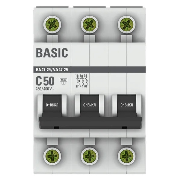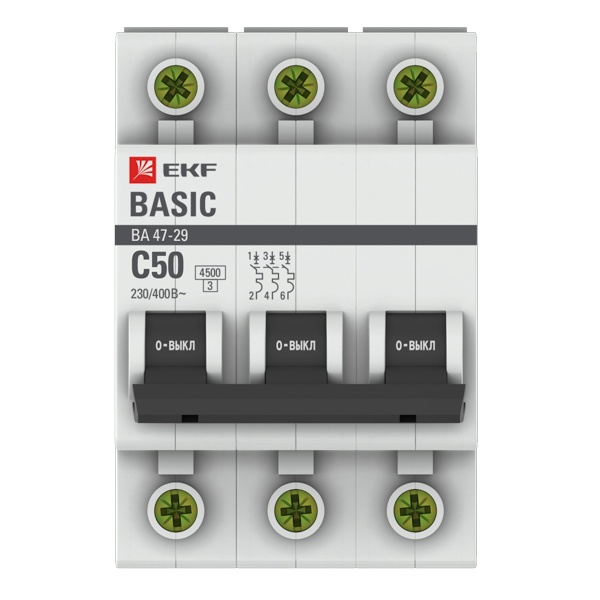 Автоматический выключатель EKF Basic ВА 47-29 3P 50А (C) 4,5кА (автомат электрический) mcb4729-3-50C