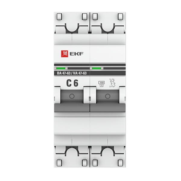 mcb4763-2-06C-pro Автоматический выключатель EKF PROxima ВА 47-63 2P 6А (C) 4,5kA (автомат электрический)