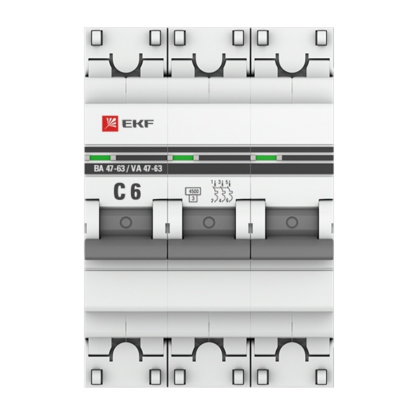 Автоматический выключатель EKF PROxima ВА 47-63 3P 6А (C) 4,5kA (автомат электрический) mcb4763-3-06C-pro