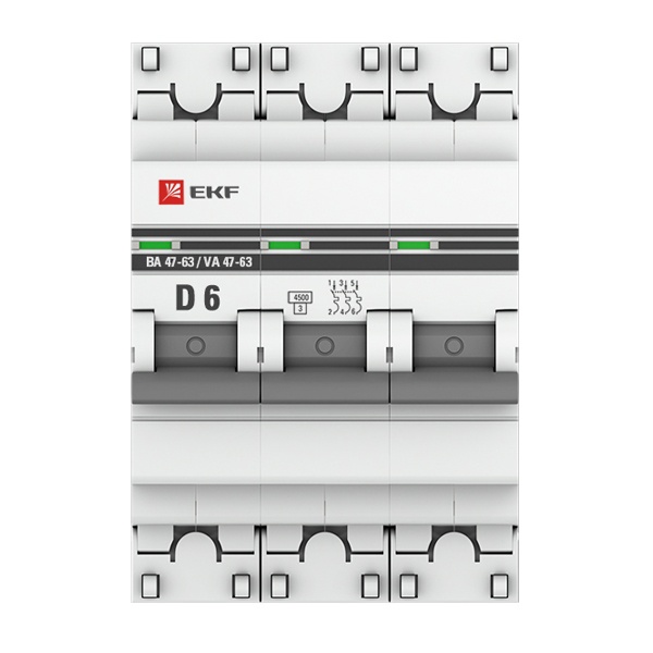 Автоматический выключатель EKF PROxima ВА 47-63 3P 6А (D) 4,5kA (автомат электрический) mcb4763-3-06D-pro
