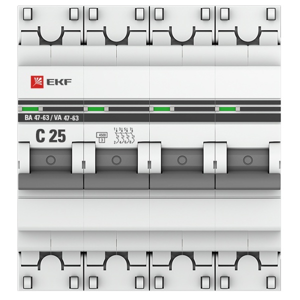 mcb4763-4-25C-pro Автоматический выключатель EKF PROxima ВА 47-63 4P 25А (C) 4,5kA (автомат электрический)