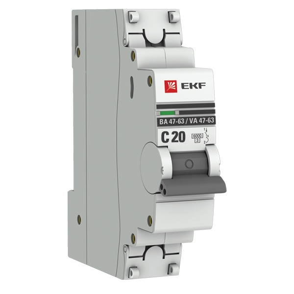 Однополюсный электрический автомат ЕКФ на дин рейку 20 Ампер с характеристикой С mcb4763-6-1-20C-pro