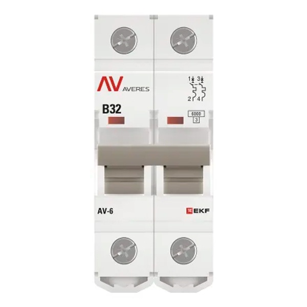 mcb6-2-32B-av Выключатель автоматический EKF AVERES AV-6 32A (B) 2P однофазный 6kA