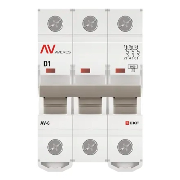 Выключатель автоматический EKF AVERES AV-6 1A (D) 3P трехфазный 6kA mcb6-3-01D-av