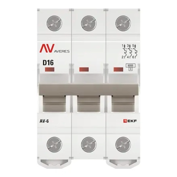 Выключатель автоматический EKF AVERES AV-6 16A (D) 3P трехфазный 6kA mcb6-3-16D-av