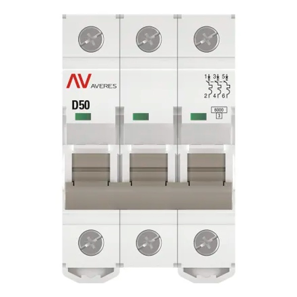 Выключатель автоматический EKF AVERES AV-6 50A (D) 3P трехфазный 6kA mcb6-3-50D-av