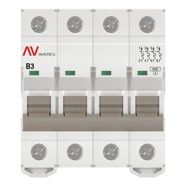 • Выключатель автоматический EKF AVERES AV-6 3A (B) 4P трехфазный 6kA