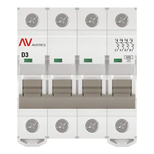 Выключатель автоматический EKF AVERES AV-6 3A (D) 4P трехфазный 6kA mcb6-4-03D-av