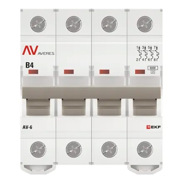 Выключатель автоматический EKF AVERES AV-6 4A (B) 4P трехфазный 6kA mcb6-4-04B-av