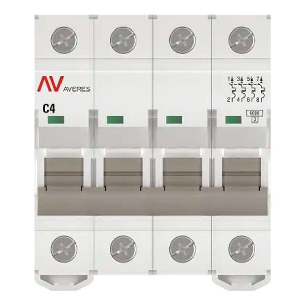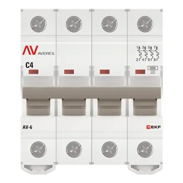 Выключатель автоматический EKF AVERES AV-6 4A (C) 4P трехфазный 6kA mcb6-4-04C-av