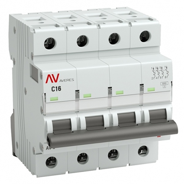 Выключатель автоматический EKF AVERES AV-6 16A (C) 4P трехфазный 6kA mcb6-4-16C-av