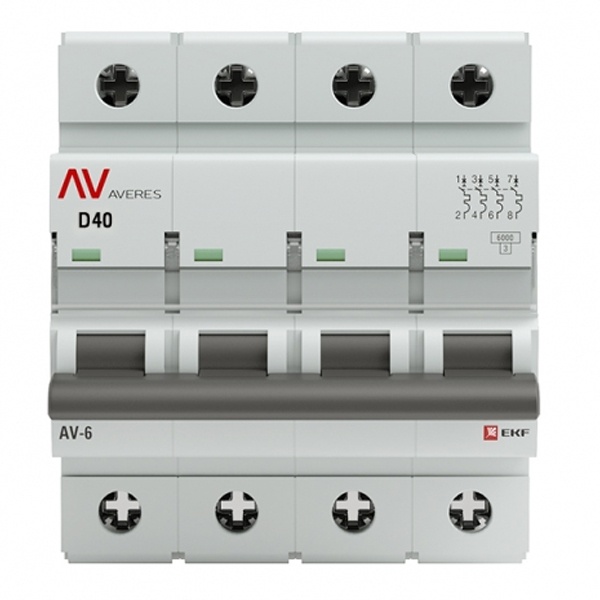 Выключатель автоматический EKF AVERES AV-6 40A (D) 4P трехфазный 6kA mcb6-4-40D-av