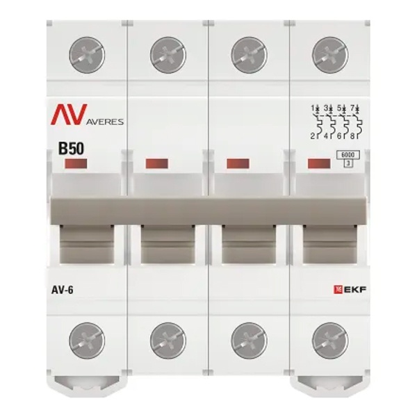 Выключатель автоматический EKF AVERES AV-6 50A (B) 4P трехфазный 6kA mcb6-4-50B-av