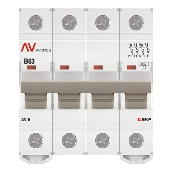mcb6-4-63B-av Выключатель автоматический EKF AVERES AV-6 63A (B) 4P трехфазный 6kA