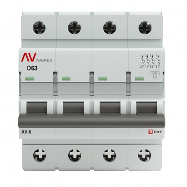 Выключатель автоматический модульный 4п D 63А 6кА AV-6 AVERES EKF mcb6-4-63D-av