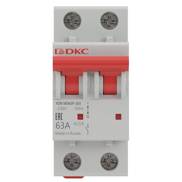 Выключатели нагрузки MD63P от компании ДКС предназначены для проведения тока в нормальном режиме и оперативного управления участками электрических цепей. Рубильники данной серии выполнены в корпусе из не поддерживающей горение пластмассы и взаимозаменяемы с аналогичными модульными выключателями нагрузки. Корпус выключателей усилен дополнительными заклепками для обеспечения его максимальной жесткости.