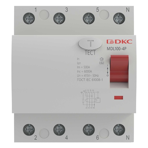 Модульный трехфазный выключатель дифференциального тока ВДТ 300 мА тип АС, 63 Ампера, ДКС MDL100-4P4-63-AC