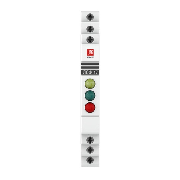 Индикатор трехфазной сети типа ЛСФ-47 тип 2 серии EKF PROxima предназначен для применения в цепях управления для визуального контроля состояния трехфазных сетей. В качестве источника света используются светодиоды. Каждой фазе соответствует один светодиод (желтый, зеленый, красный). В случае отсутствия напряжения фазы соответствующий светодиод гаснет. ВНИМАНИЕ: каждую фазу необходимо соединять со светодиодами соответствующего цвета (L1 – ЖЕЛТЫЙ, L2 - ЗЕЛЕНЫЙ, L3 – КРАСНЫЙ)