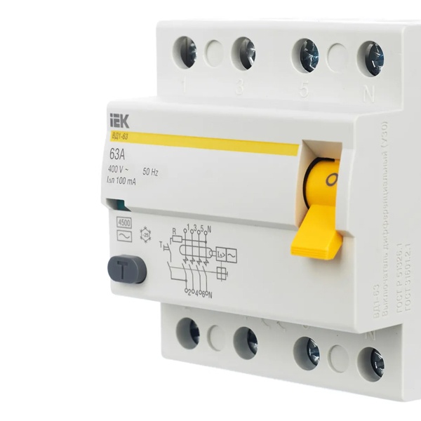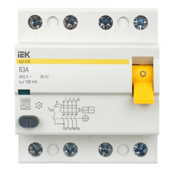 УЗО двухполюсные и четырехполюсные ВД1-63 тип A 4,5кА IEK
