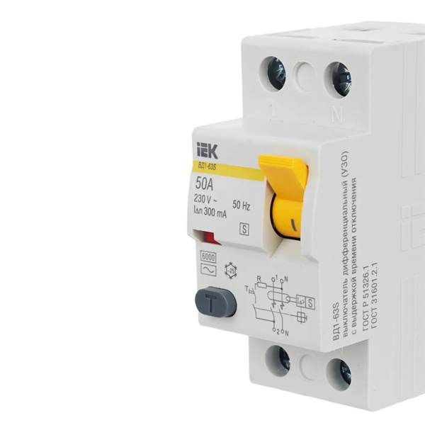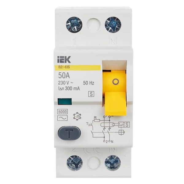 УЗО ИЭК ВД1-63S 2Р 50А 300мА тип AC селективное (ВДТ) MDV12-2-050-300