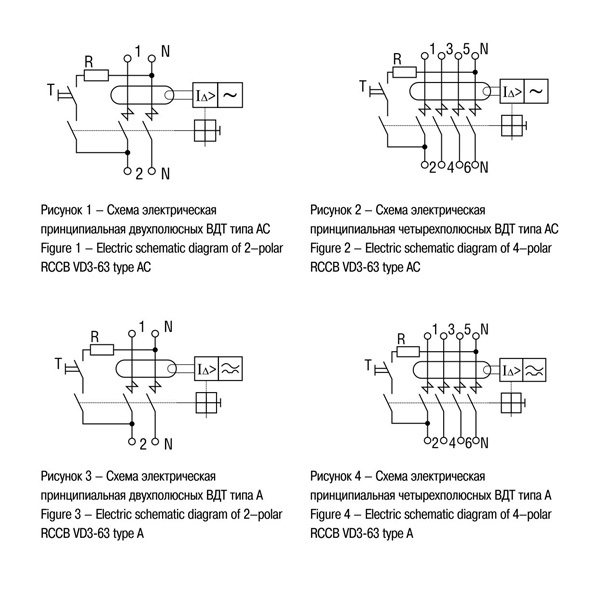 Выключатель дифференциального тока ВД3-63 серии KARAT известной торговой марки IEK представляет собой двухмодульное устройство. Применение устройства допустимо в однофазных электросетях переменного тока с напряжением 230 Вольт и частотой 50 Герц. ВДТ данного типа используется в промышленной отрасли, жилом секторе и на коммерческих объектах. Он устанавливается на DIN-рейку в распределительном щите. УЗО рассчитано на предельный ток 63 Ампера и допустимый ток утечки до 100 милиампер. Максимальная отключающая способность прибора составляет 6000 Ампер. Характеристика срабатывания от дифференциальных токов относится к типу АC. Особенностью модели является наличие специально разработанной схемы подключения тестирующей цепи. Максимальное сечение подключаемого кабеля составляет 50 мм2. Степень защиты корпуса IP30 предполагает размещение в сухом влагозащищенном месте. С помощью ВДТ обеспечивается безопасность человека от поражения током и оборудования от пожара при утечке тока и нарушенной изоляции токоведущих частей.