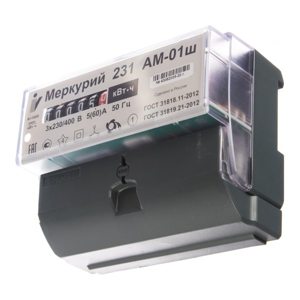 Электросчетчик Меркурий-231 АМ-01ш 5-60А 230/400В однотарифный на din-рейку — трехфазный электронный прибор учета активной электроэнергии для сетей 230/400 В. Предназначен для надежного коммерческого и технического учета потребления в однотарифном режиме. Исполнение на DIN-рейку упрощает монтаж в распределительных щитах и шкафах, а диапазон токов 5–60 А позволяет использовать счетчик в большинстве бытовых и небольших коммерческих объектов.