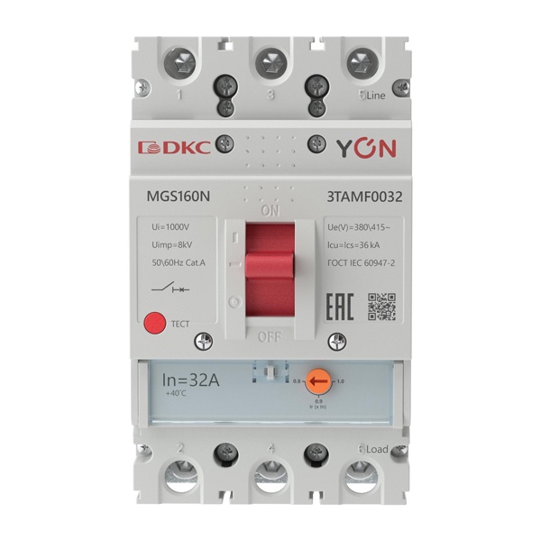 MGS160N-3TAMF0032 Автоматический выключатель DKC YON MGS160 3P 25,6-32A регулировка теплового расцепителя 36кА (автомат электрический)