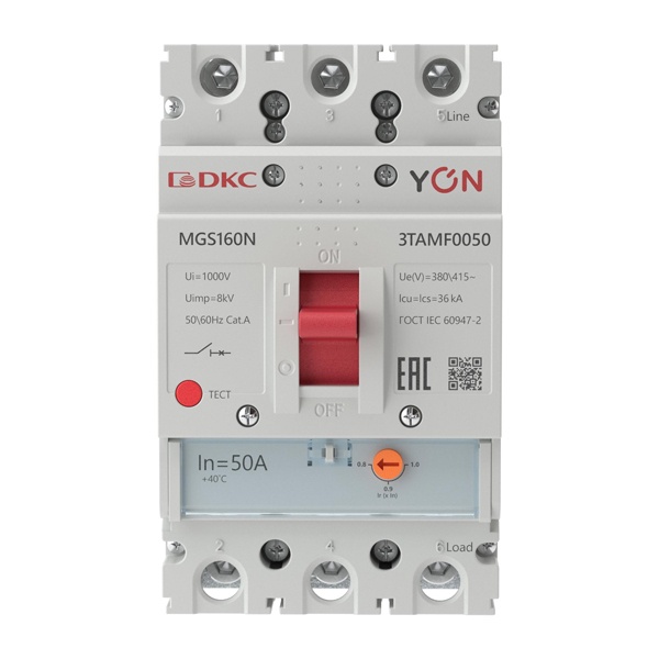 MGS160N-3TAMF0050 Автоматический выключатель DKC YON MGS160 3P 40-50A регулировка теплового расцепителя 36кА (автомат электрический)