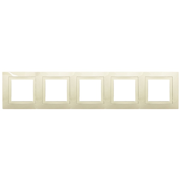 Рамка Schneider Electric UNICA (бежевый) пятиместная с полем для декоративного элемента, устанавливается в вертикальном и горизонтальном положениях.