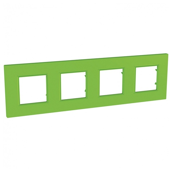Рамка Schneider Electric UNICA QUADRO (киви) четырёхместная, устанавливается в вертикальном и горизонтальном положениях.