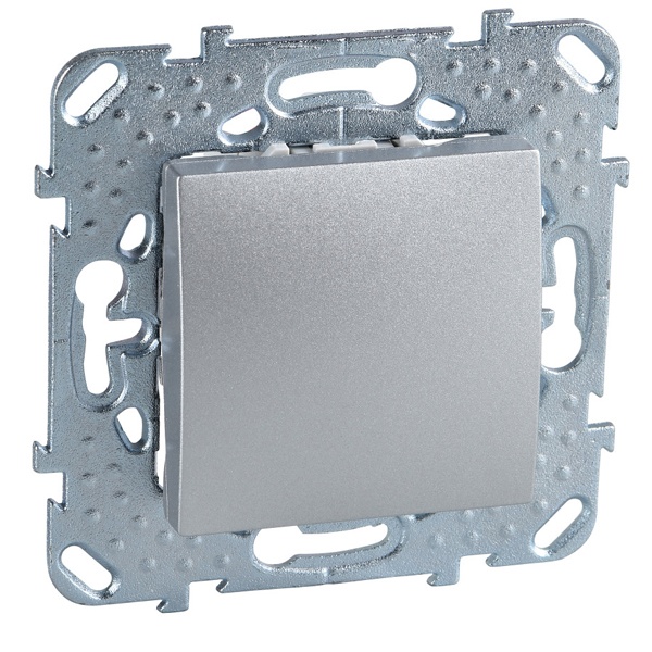 Переключатель одноклавишный Schneider Electric UNICA ТОР (алюминий) перекрёстный без подсветки предназначен для сетей до 250 В на ток до 10 А.- 1 переключающий контакт.- Специальные направляющие для облегчения ввода кабеля.- Переключатель позволяет управлять одним источником света из двух точек.