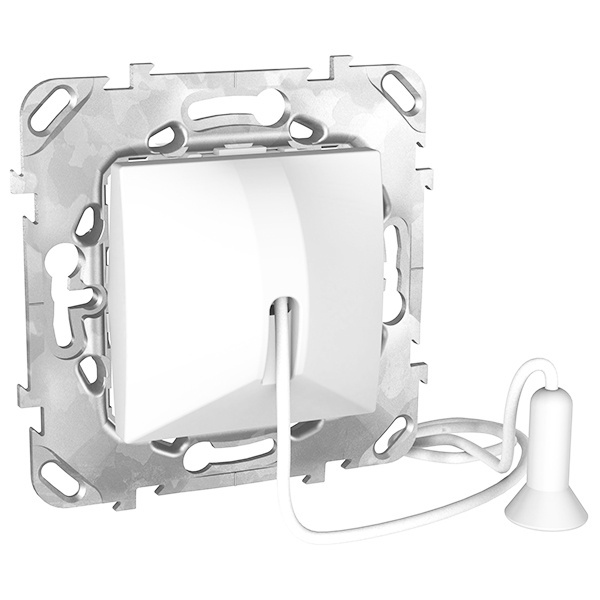 Выключатель одноклавишный Schneider Electric UNICA (белый) без подсветки со шнуром длиной 1 метр без фиксации предназначен для сетей до 250 В на ток до 10 А. - 1 нормально открытый контакт. - Идеально подходит для бра. - Увеличенные разделители для исключения возможности короткого замыкания.