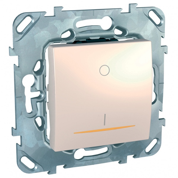 Выключатель одноклавишный Schneider Electric UNICA (бежевый) двухполюсный с индикацией, с винтовыми клеммами предназначен для сетей до 250 В на ток до 16 А. - 1 нормально открытый контакт. - Индикация делает выключатель легко находимым в отсутствие освещения. - Увеличенные разделители для исключения возможности короткого замыкания.