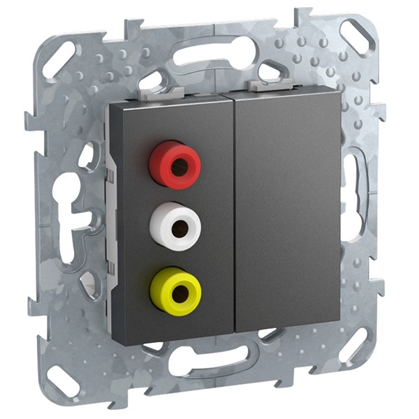 Розетка 3 RCA Schneider Electric UNICA ТОР (графит) для видеосигнала и стереофонического звука. - Привлекательный внешний вид.- Сокращение времени монтажа.- Термопластик АBS, устойчивый к УФ излучениям.