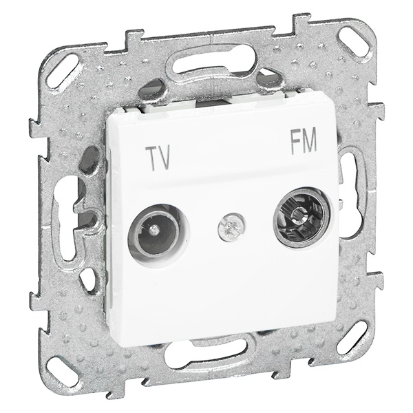 ТВ- розетки распределяют сигнал, приходящий по одному кабелю на два выходных конектора диаметром 9,5 мм. Конструкция TV/FM-розетки логично предусматривает правильное подсоединение коаксиального кабеля.Корпус телевизионной розетки выполнен из специального цинко-аллюминиевого сплава Zamak, что обеспечивает электро-магнитное экранирование пассивных элементов, заключенных внутри, и позволяет достичь оптимальных характеристик, необходимых для получения качественного видео-и аудио-сигнала. Рамки Unica