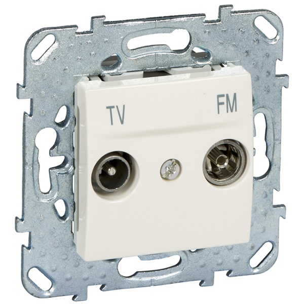 ТВ- розетки распределяют сигнал, приходящий по одному кабелю на два выходных конектора диаметром 9,5 мм. Конструкция TV/FM-розетки логично предусматривает правильное подсоединение коаксиального кабеля.Корпус телевизионной розетки выполнен из специального цинко-аллюминиевого сплава Zamak, что обеспечивает электро-магнитное экранирование пассивных элементов, заключенных внутри, и позволяет достичь оптимальных характеристик, необходимых для получения качественного видео-и аудио-сигнала. Рамки Unica