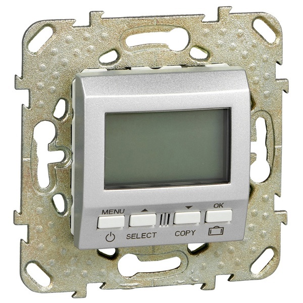 Термостат программируемый Schneider Electric UNICA ТОР (алюминиий) со встроенным термодатчиком на ток 8 А.